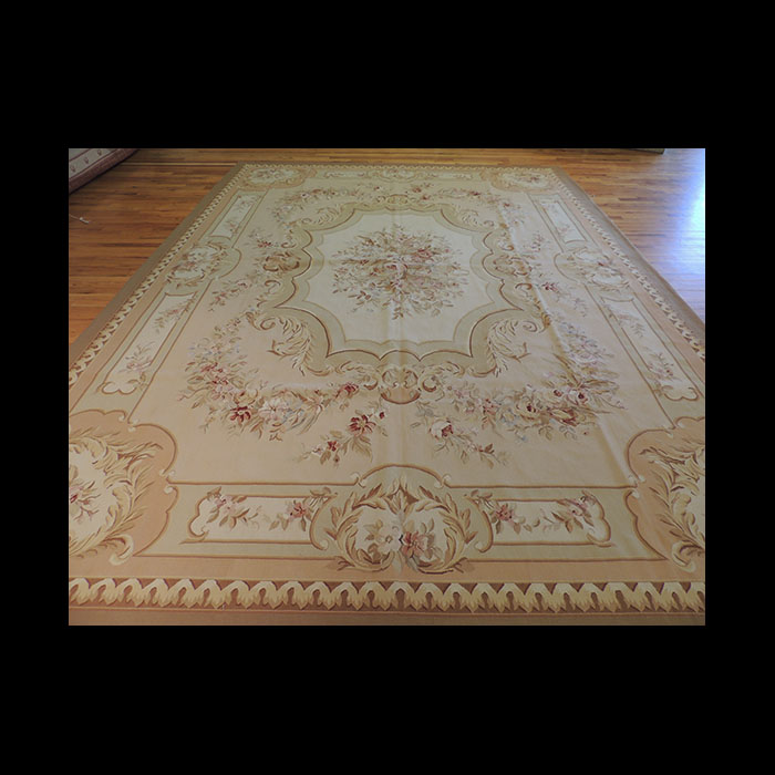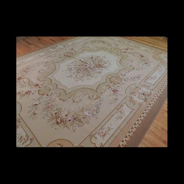 With a center medallion and all-over pattern of flowers. It has soft pleasing colors of peach, beige, green and rose, and is truly elegant. A Genuine Oriental Hand-made (knotted) Rug One-of-a-kind