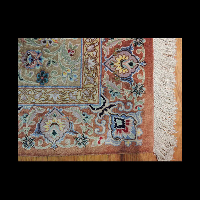 Made in Iran (Persia) 100% silk pile & silk foundation Hand-made (finely hand-knotted) ca. 1960 Actual Size 2.7×3.11